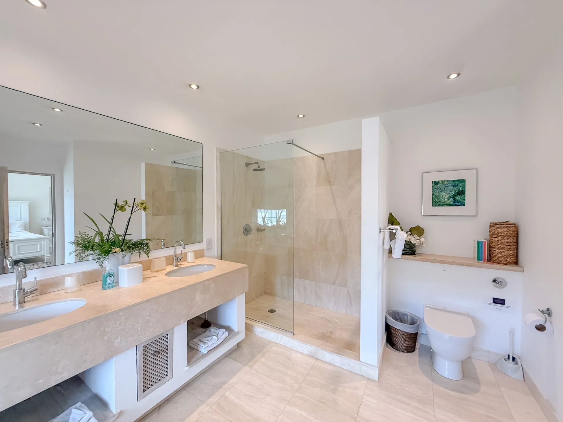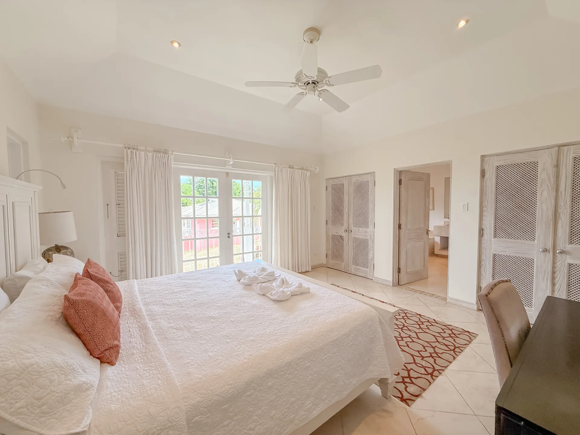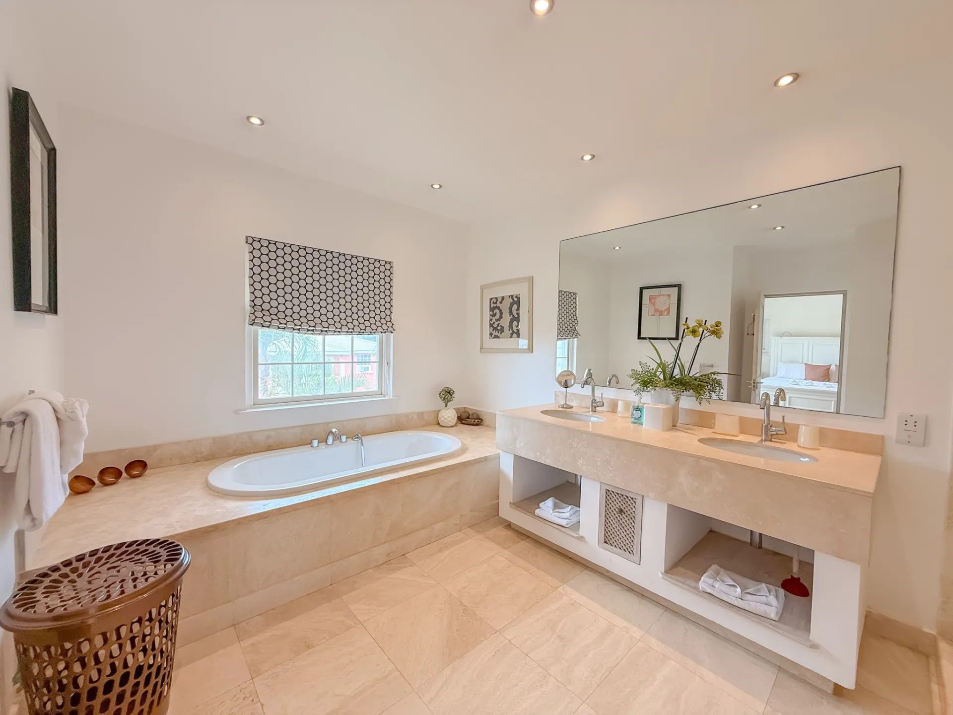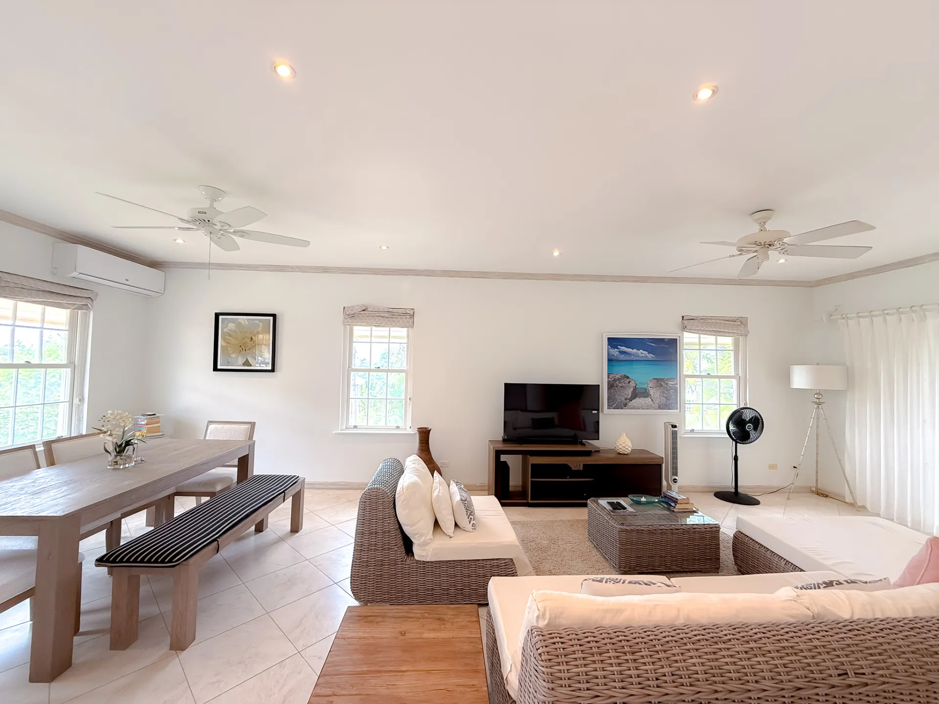The townhouse features spacious, open-plan living and dining areas filled with natural light, complemented by a modern, fully equipped kitchen. Air conditioning throughout ensures a cool and comfortable environment year-round, while the thoughtfully arranged bedrooms provide a relaxing retreat after a day of exploring Barbados. The primary bedroom offers added privacy, ideal for longer or more restful stays.