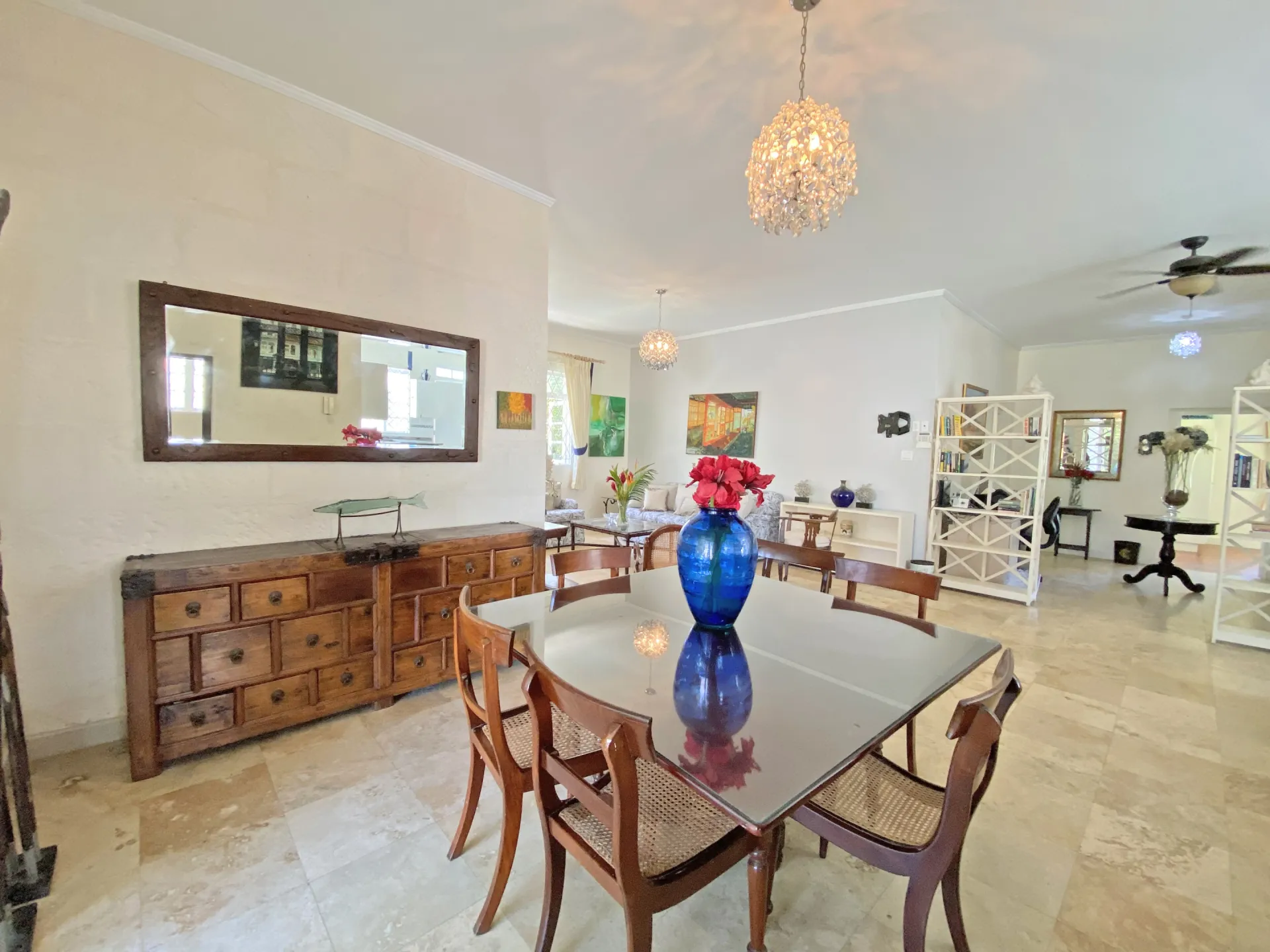 The home features an open-plan living and dining layout that flows seamlessly into inviting outdoor spaces, where a private plunge pool and mature garden create a peaceful, enclosed retreat. Designed with both lifestyle and functionality in mind, Blue Skies offers an easy indoor–outdoor connection that suits Barbados’ year-round climate and relaxed pace of life.