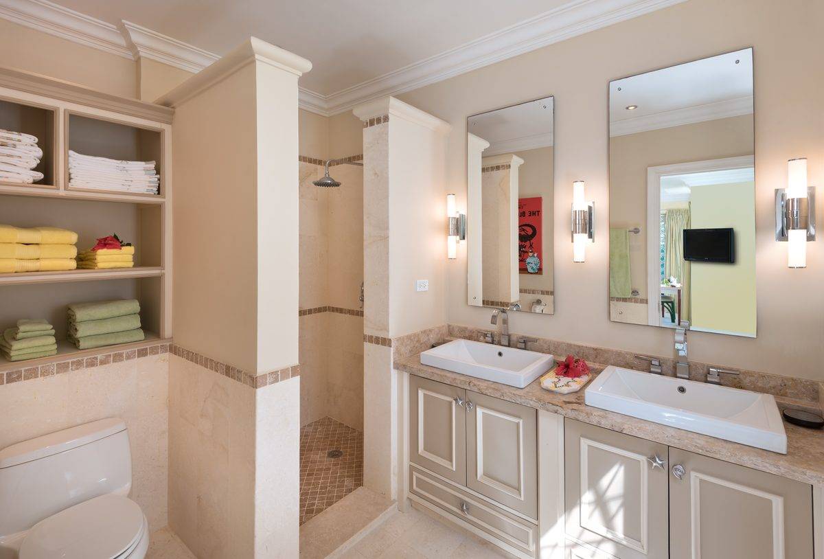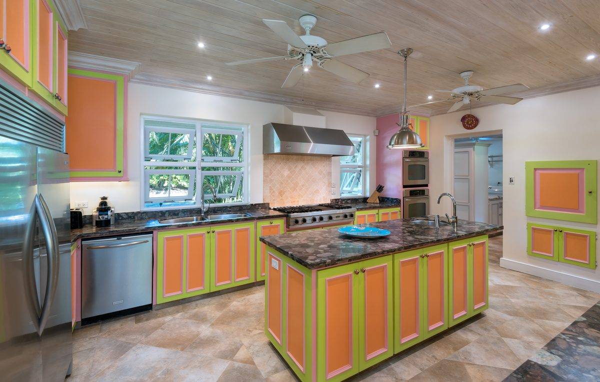 Evergreen truly is a treasure and offers the unique quality of featuring more common areas than any other villa of that size, all designed to suit the guests every possible mood. From the more formal living room to the expansive patios, the brand new state of the art family room that can sit comfortably a house full of guests for a movie on the big screen TV, to the Puncherie on the roof terrace, aptly named to reflect its perfect position to enjoy the best rum punch on the Island, while watching the sun set over the Caribbean Sea, without forgetting the Mondrian inspired bar and dancing floor, guests will never want to leave the house!