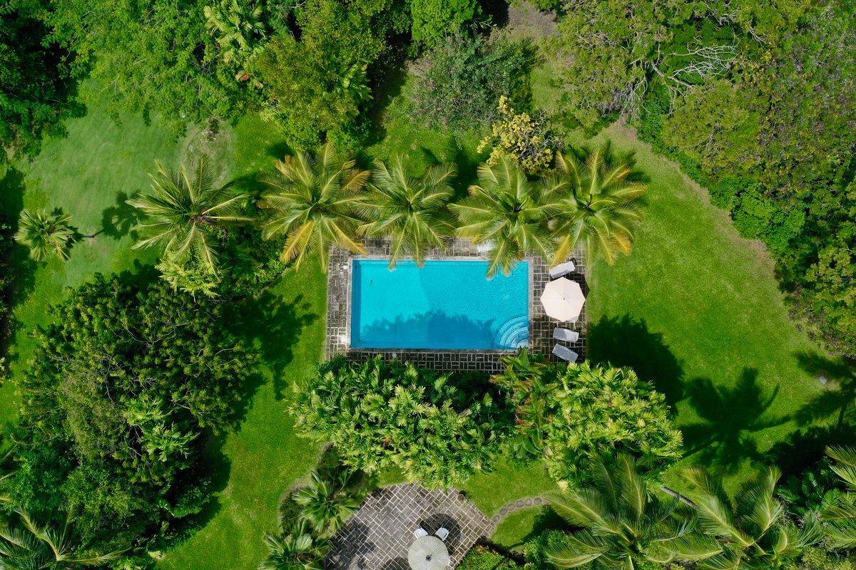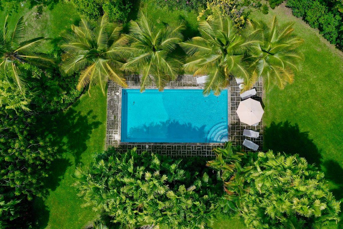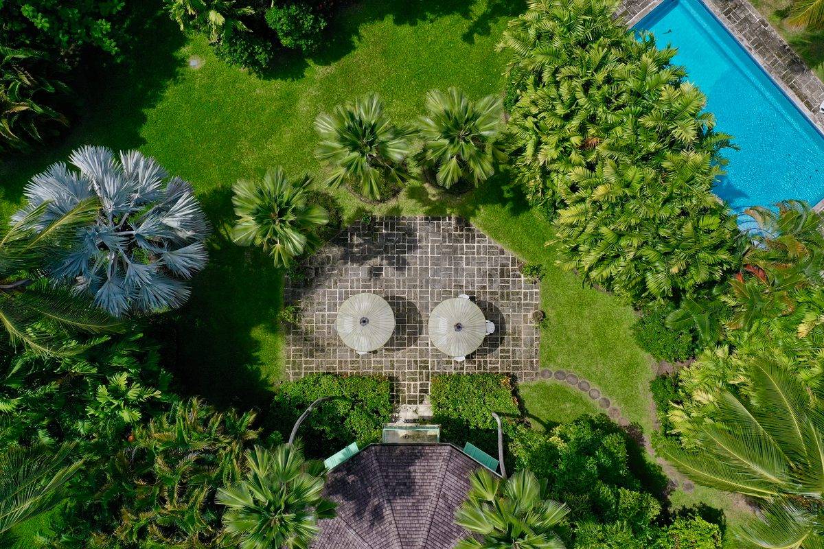 This elegant rental villa is beautifully furnished with a unique mix of antiques and contemporary art pieces. Evergreen features four sprawling air-conditioned bedrooms, and five exquisitely designed bathrooms. Each bedroom has its own distinctive feeling with unique decorations and furnishings. One of the master bedrooms has an unrivaled view of the Estate gardens and two of the very gracious guest suites open onto the tropical gardens.