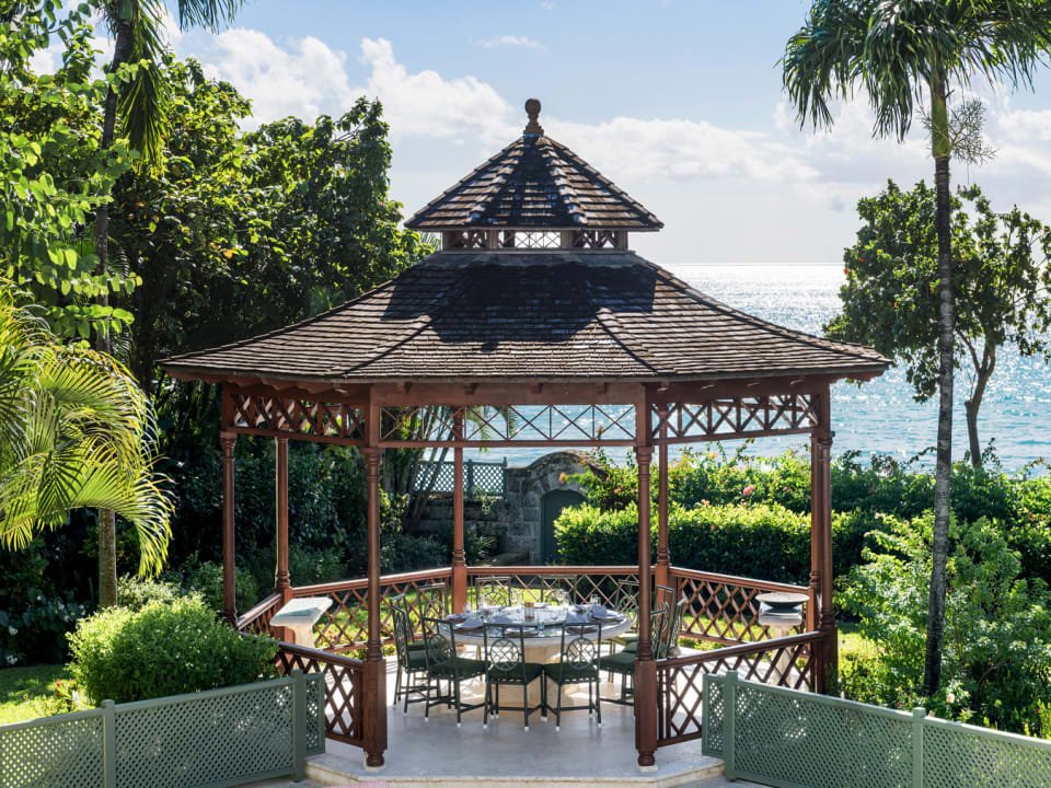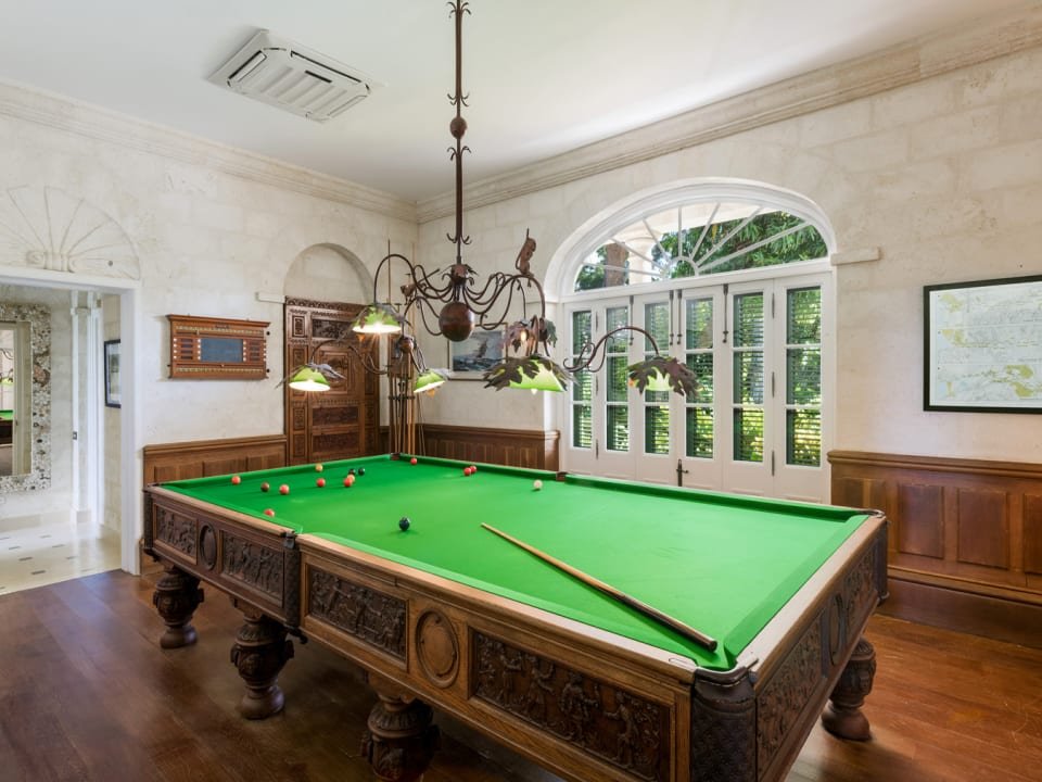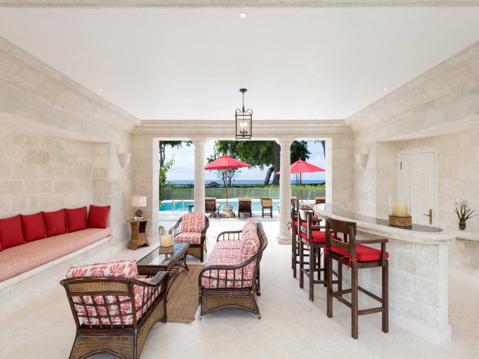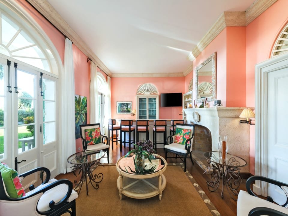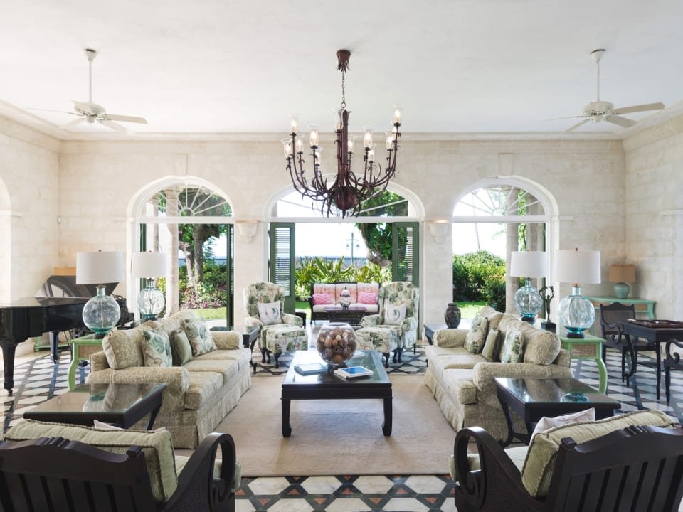 The estate’s arrival experience is regal, with a sweeping coral stone driveway leading to the foyer. The main house is designed in a traditional Barbadian style with grandeur immediately apparent upon entering, with a striking double staircase and a grand living space. This breathtaking space seamlessly transitions to a sweeping wrap-around terrace, enveloping guests in manicured gardens that gracefully cascade towards the Caribbean Sea.