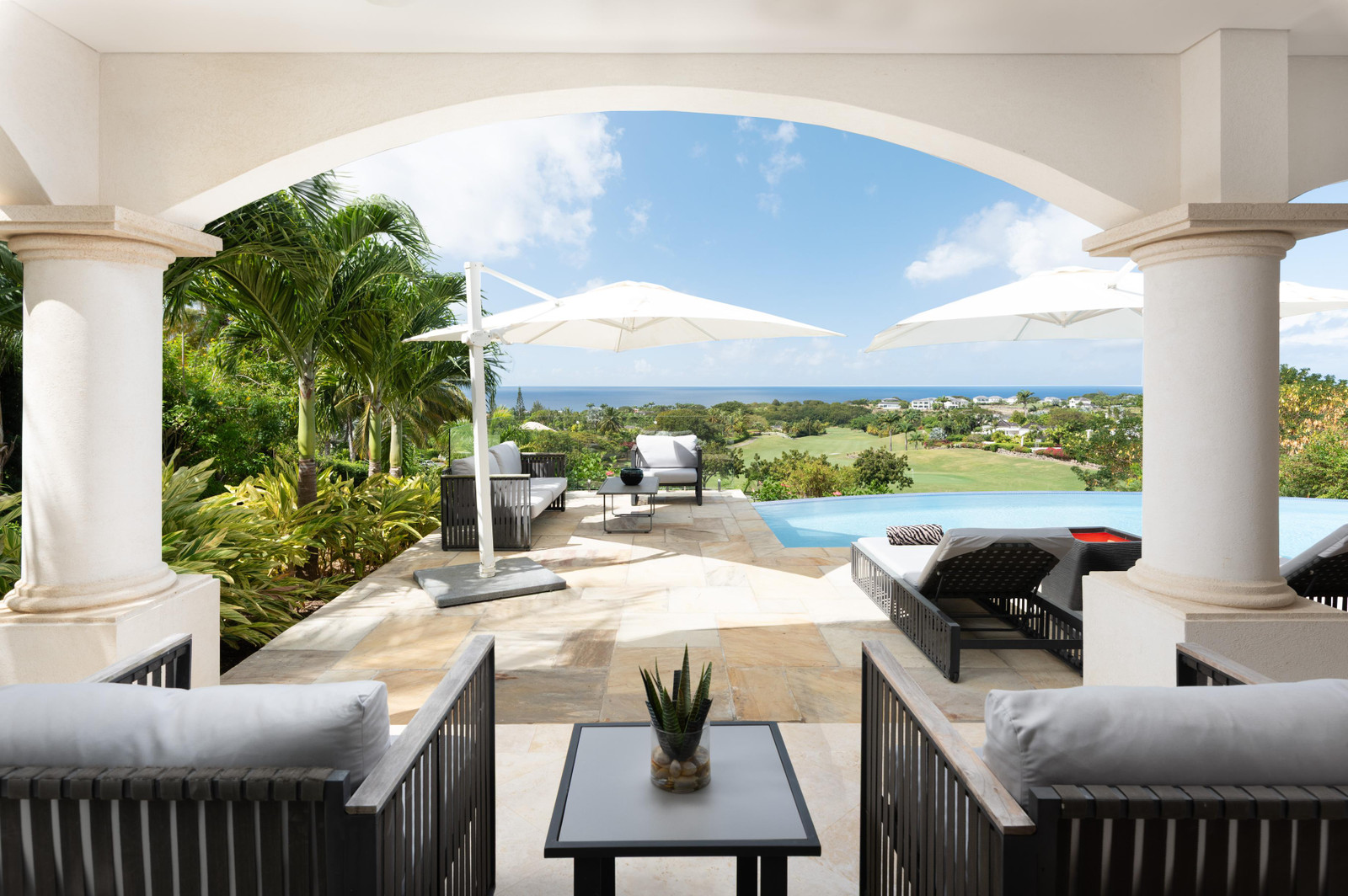 This beautifully designed home sits on the desirable Lancaster Drive, a ridge overlooking the 16th and 17th fairways, offering breathtaking views of the lush golf course and the shimmering panoramic Caribbean Sea to the west and south.