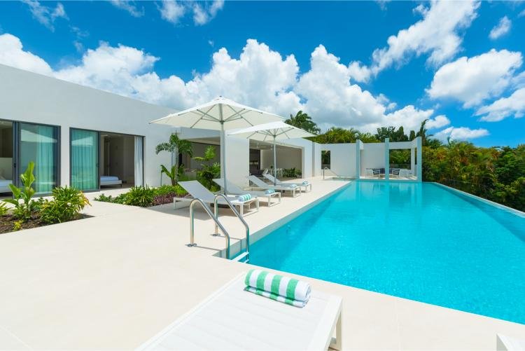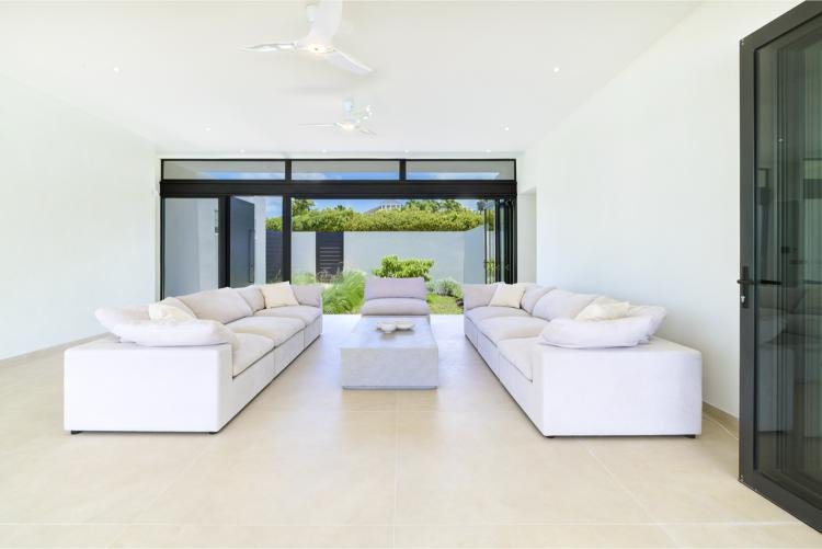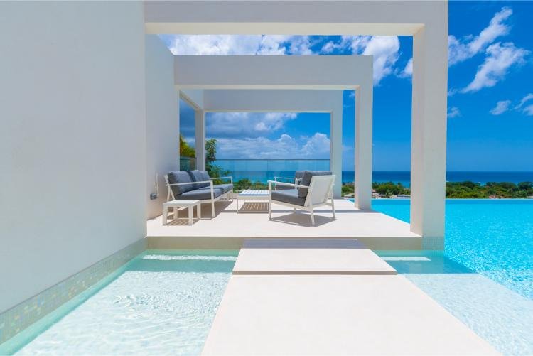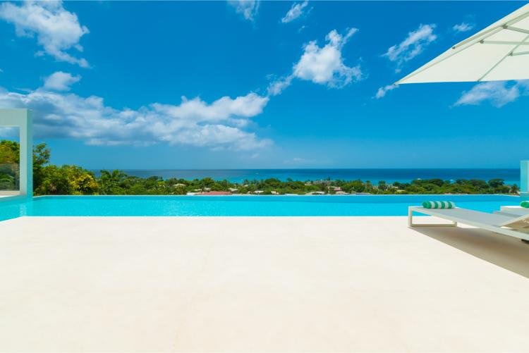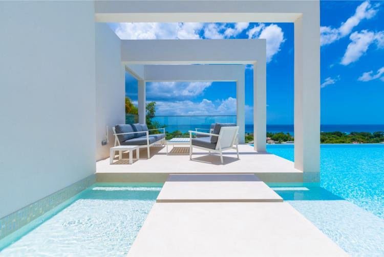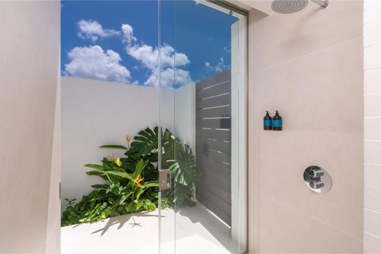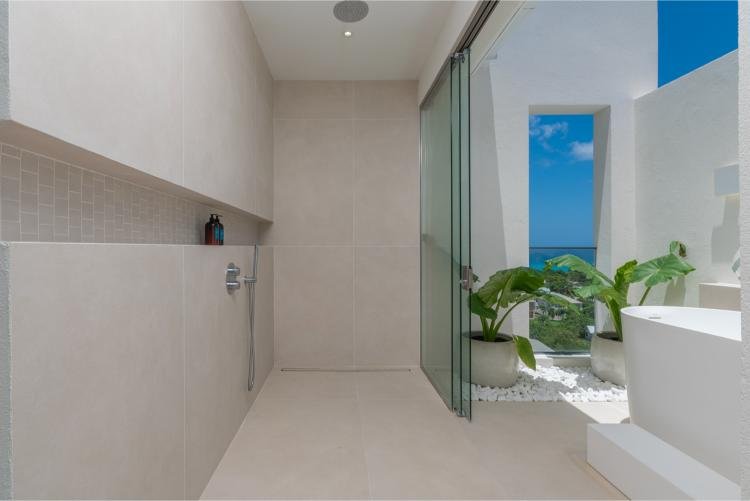 The centrepiece of the outdoor space is the 18-metre infinity-edge pool, with a maximum depth of 6 ft 9 in which is perfect for swimming lengths, early-morning laps or evening exercise beneath the Caribbean sky. A self-contained shallow area invites gentle paddling or relaxed lounging, while a private poolside cabana and outdoor shower add to the sense of resort-style indulgence. The pool also features a heating system, available on request, ensuring year-round comfort whenever you choose to take a dip.