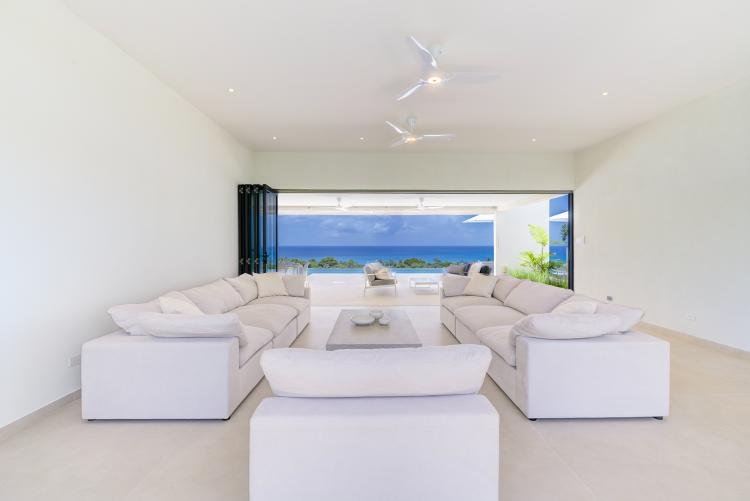 The heart of the home features an expansive open living and dining area that flows effortlessly onto a sun-drenched terrace, framing a spectacular infinity-edge pool that seems to merge with the Caribbean Sea. Whether you’re relaxing poolside or entertaining under the stars, the views and atmosphere are nothing short of extraordinary.