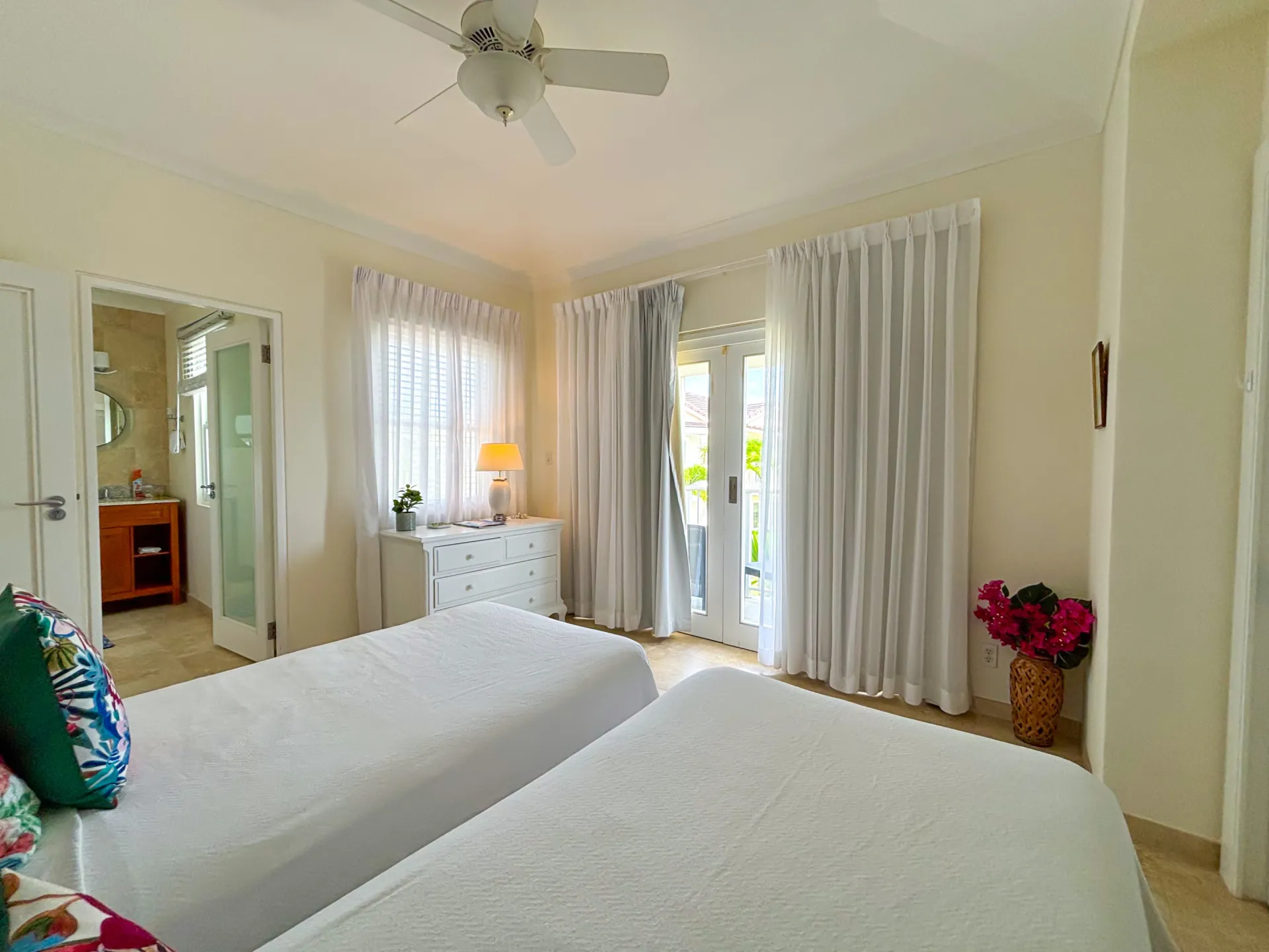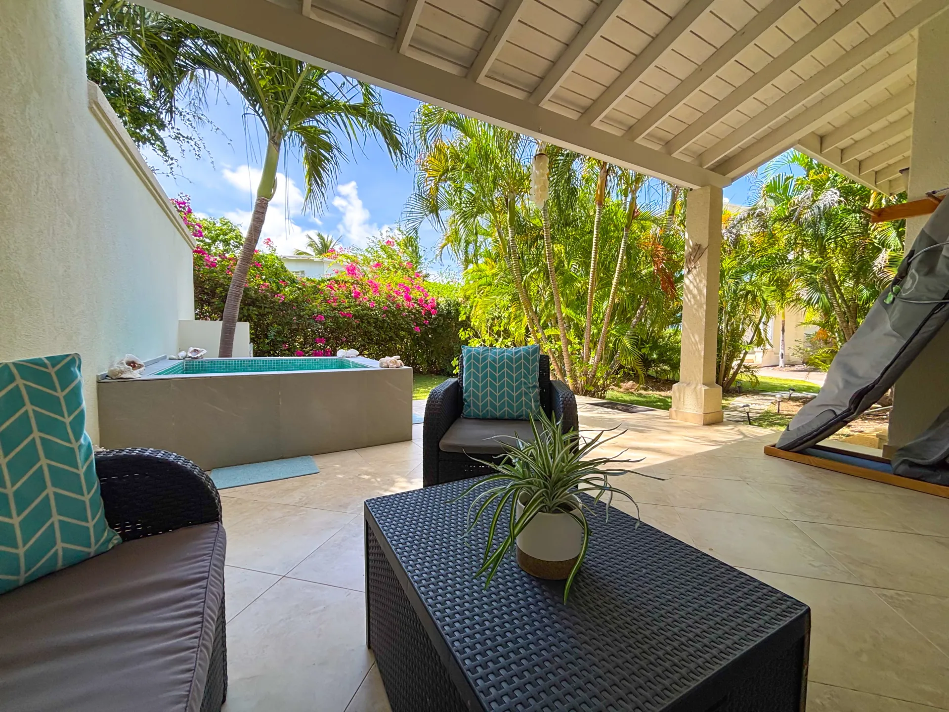 Experience the ultimate short-term getaway at Palisades 8B, a chic 3-bedroom, 3.5-bathroom townhome nestled in an exclusive private community near Miami Beach and Freights Bay, two of Barbados’ sought-after destinations. This gated haven features only 16 sophisticated residences, each offering cleverly designed spaces, stylish interiors, and a refreshing plunge pool on the private patio. The upstairs master suite boasts an opulent bathroom, walk-in wardrobe, and a private verandah for moments of serenity. The two additional bedrooms, each with its own en suite, come complete with private balconies or patios, ensuring your guests enjoy their own secluded retreats.