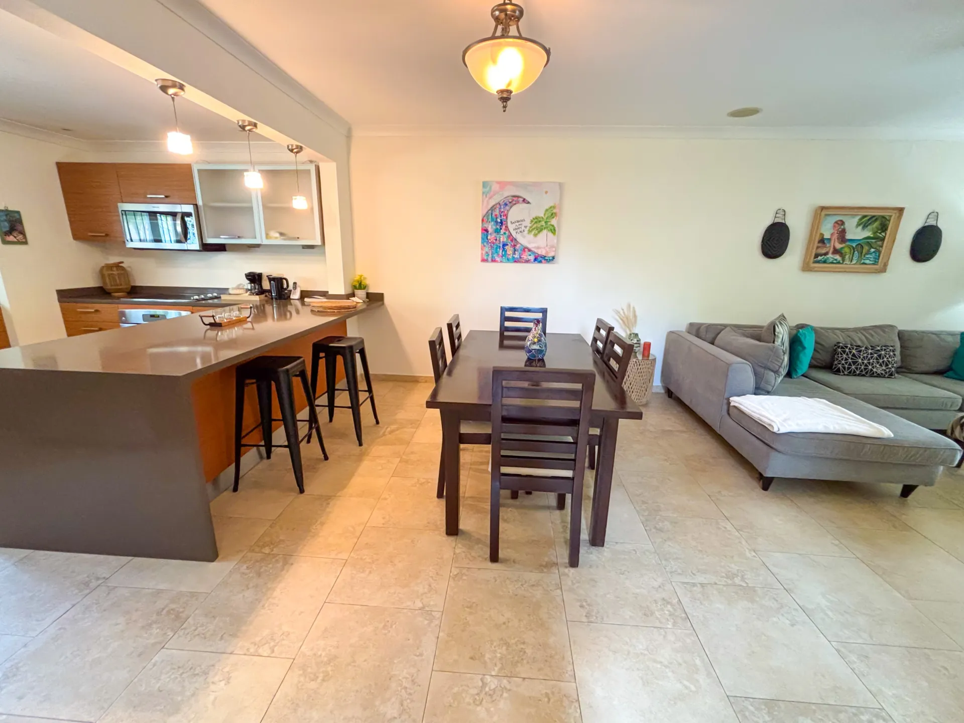 Ideally located, the home is just a brief 5-minute stroll to the beach and various amenities in Oistins, providing convenience and endless opportunities for relaxation and exploration during your short-term stay.