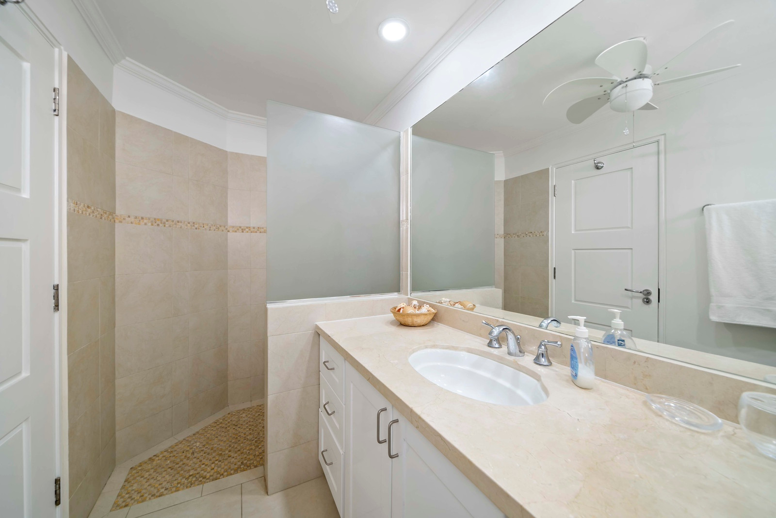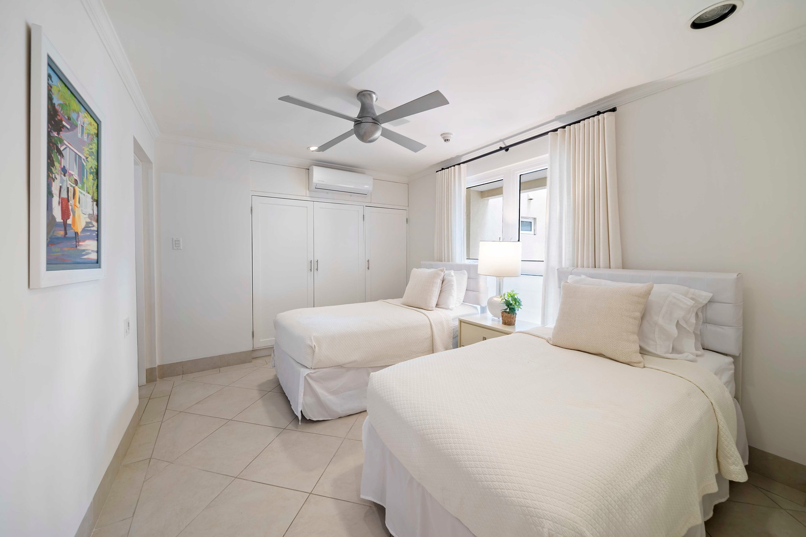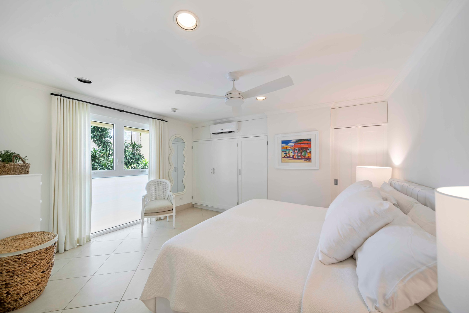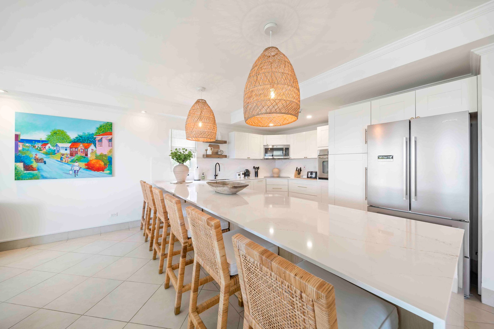 Step into a meticulously designed retreat exuding a serene ambiance through its tasteful décor in soothing light hues, perfectly complementing the vibrant tropical atmosphere of beachfront living. Each of the three bedrooms is equipped with refreshing air conditioning and features its own private ensuite bathroom, with the master suite boasting a rejuvenating shower, soaking tub, and an expansive walk-in closet. Additionally, guests can benefit from the convenience of an extra powder room situated near the entrance.