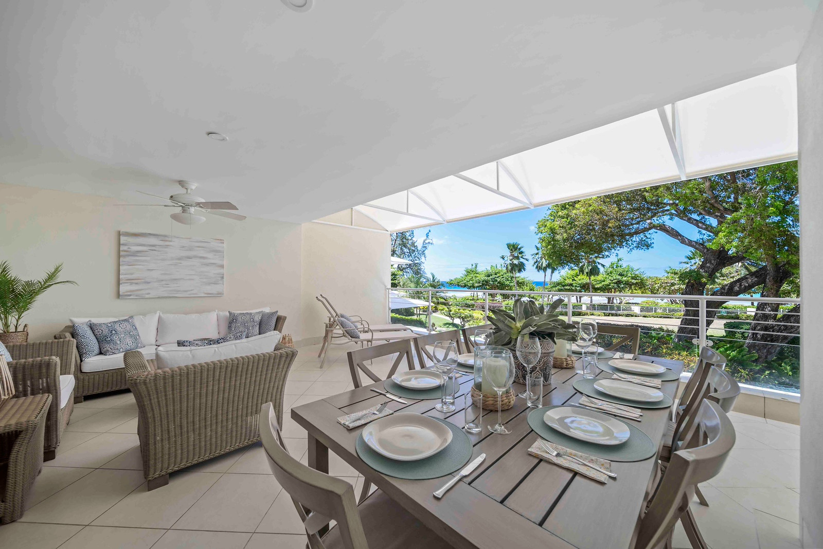 Discover the epitome of tropical luxury at Palm Beach 204, an exquisite beachfront three-bedroom, three-bathroom condominium ideally situated on the second floor, showcasing breathtaking vistas of the stunning South Coast of Barbados. Boasting a spacious covered patio adorned with an inviting dining table and plush lounge seating, Palm Beach 204 offers an idyllic sanctuary for your next memorable Barbadian vacation.