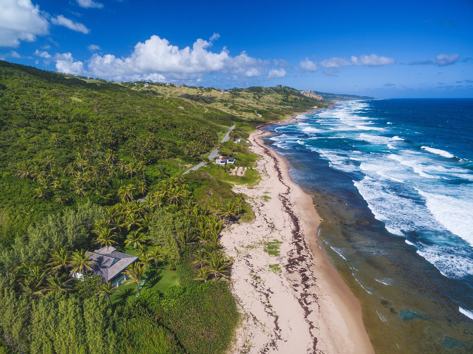Seagrape House is on the Oceanside of the highway facing Cattlewash beach with Lots A & B on the opposite side to the highway, sloping upwards towards a hill crest. The property can best be described as divided into a beach cottage and a separate large parkland of approximately 100 acres located directly across the highway.