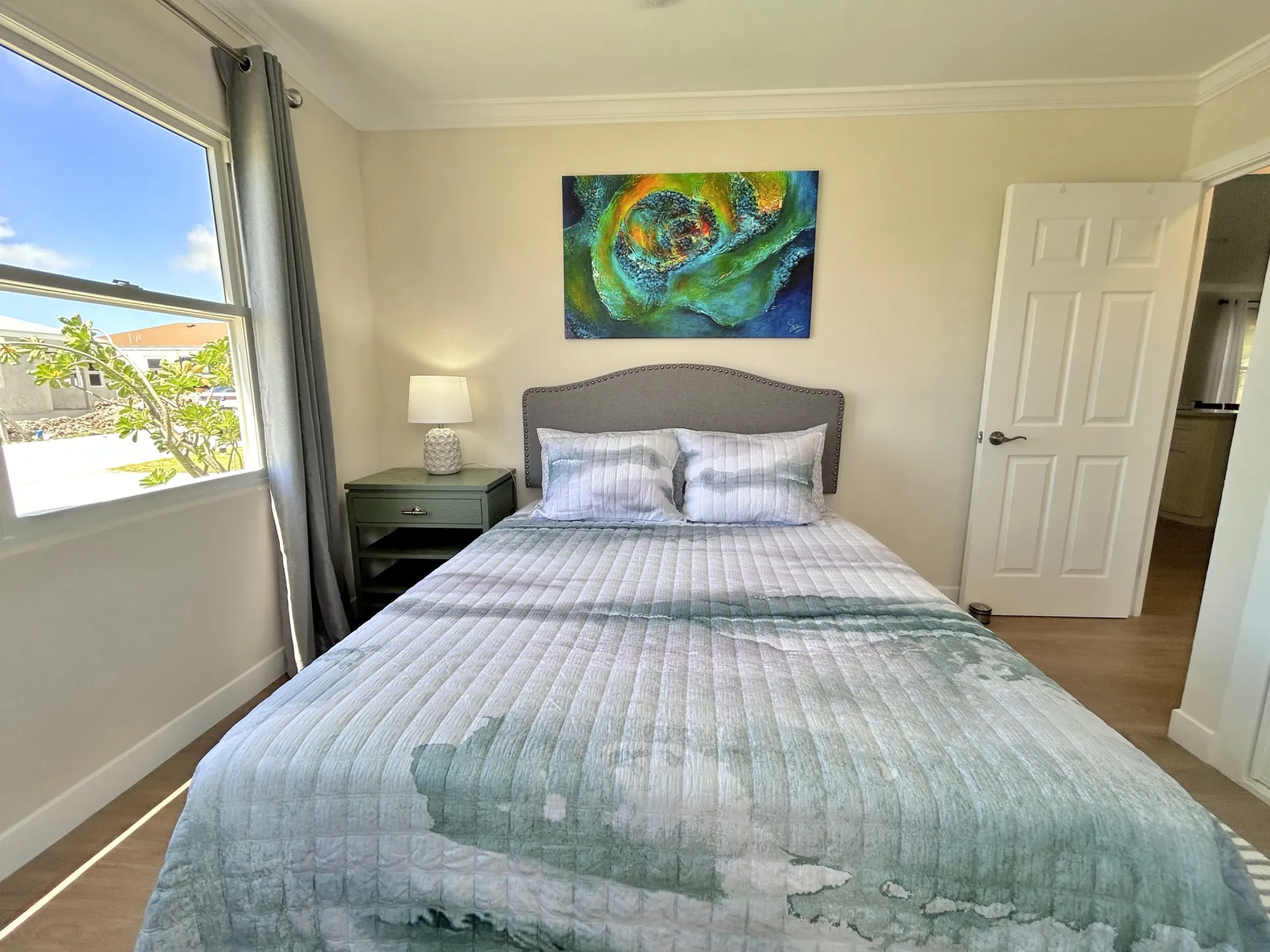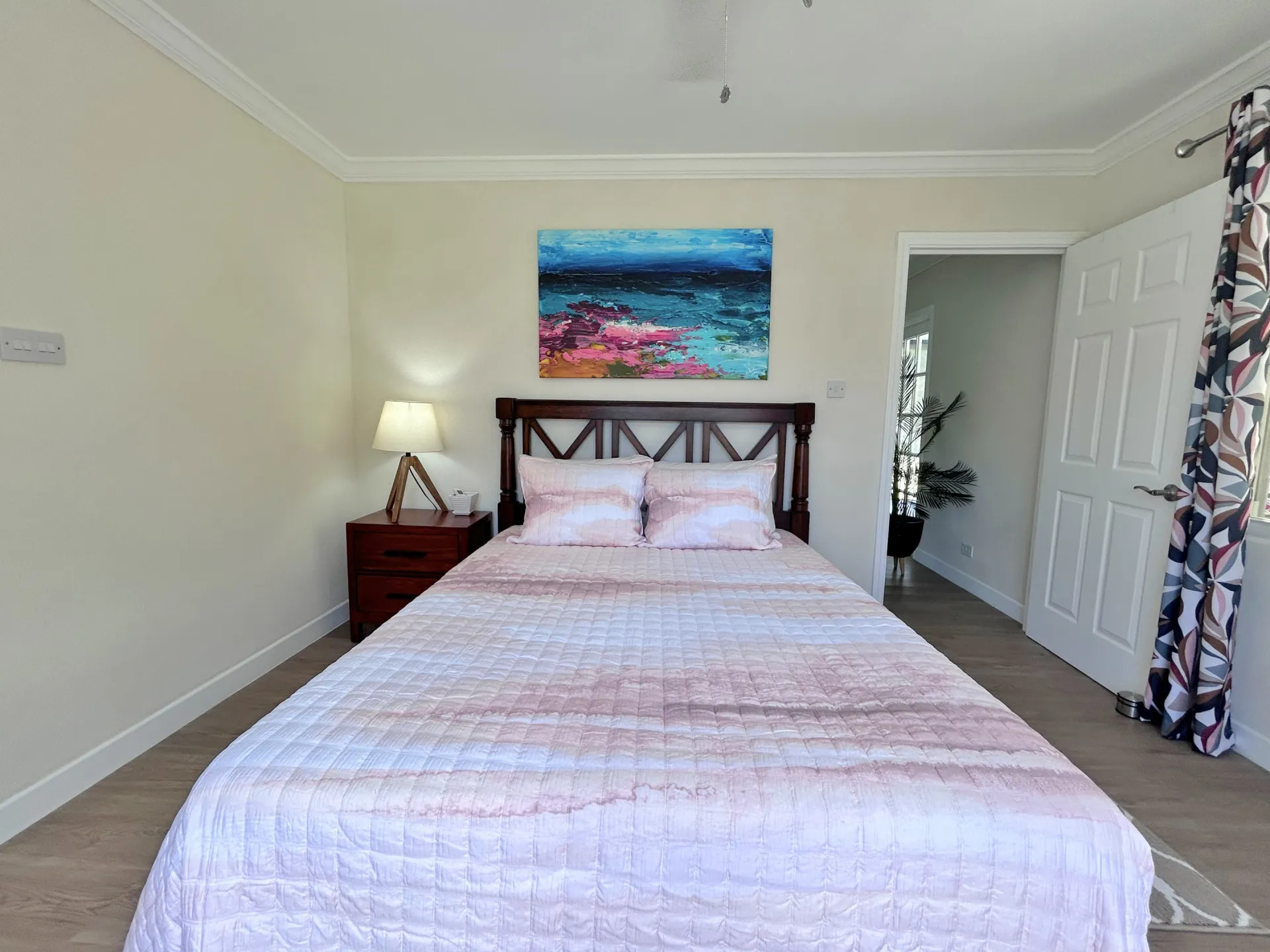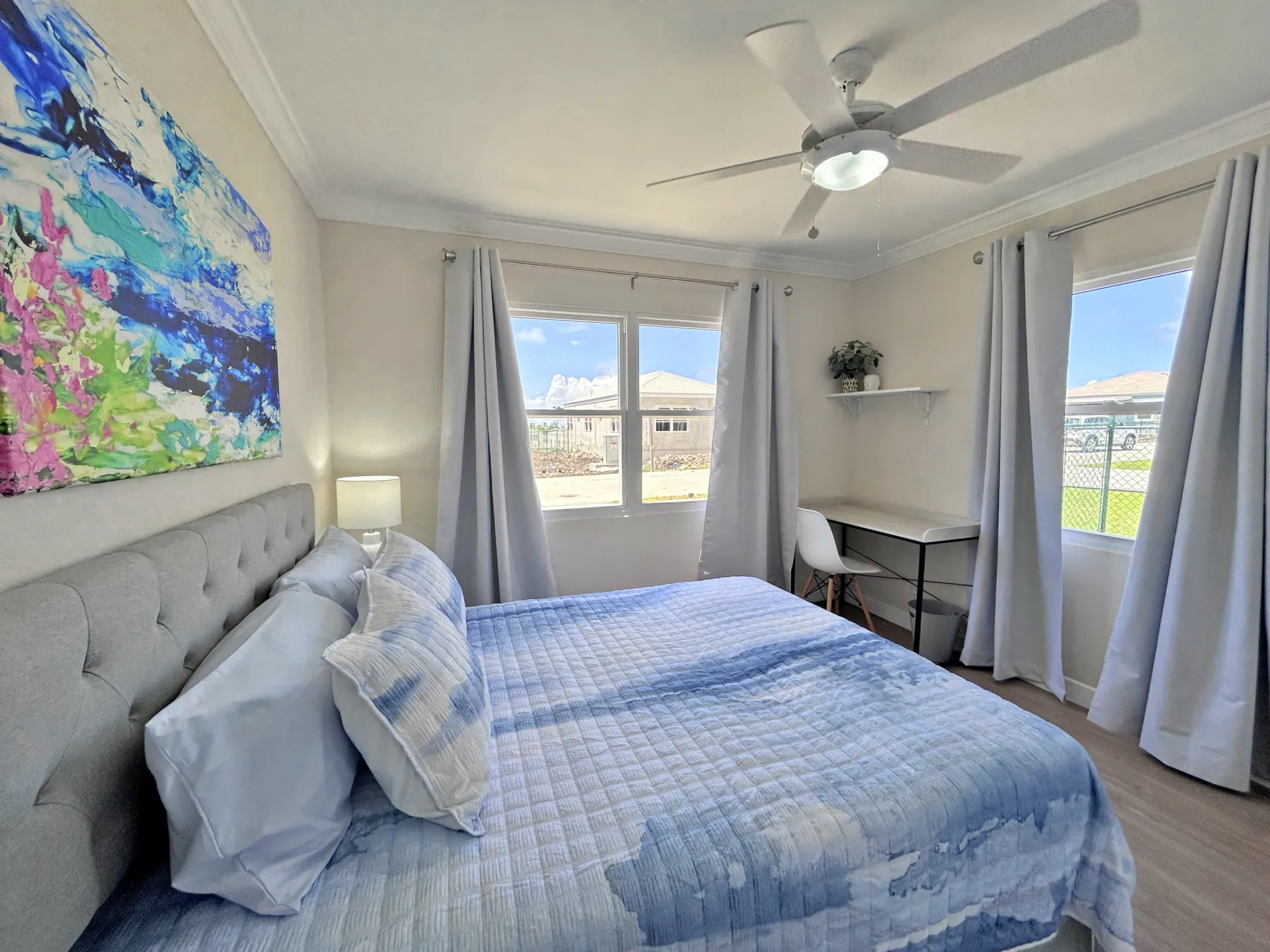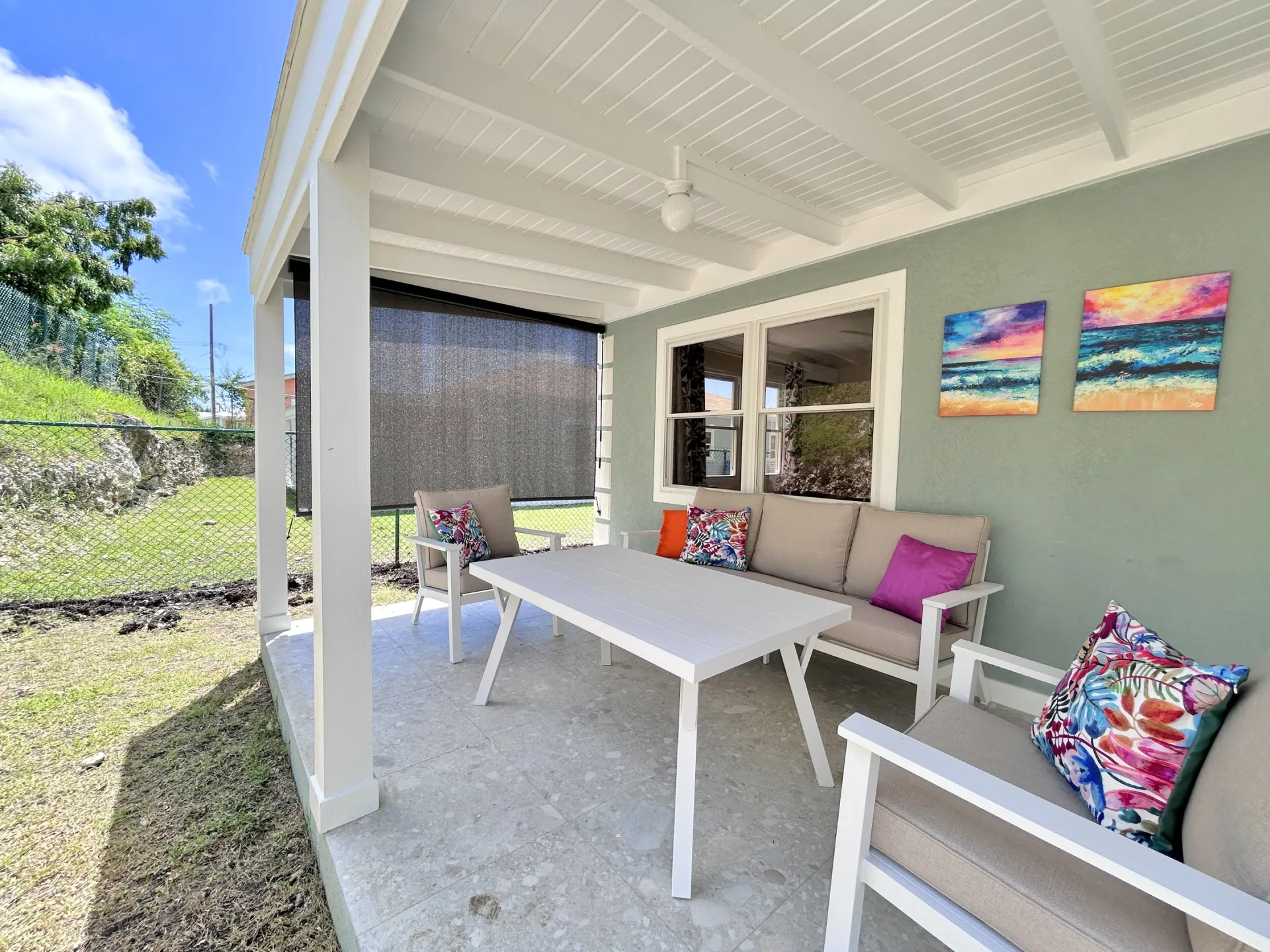 This beautifully fully furnished and fully air conditioned home is ideally located towards to the North of the Sugar Apple neighbourhood and offers lovely privacy. It has an open plan living concept with the laundry neatly tucked away and a spacious covered back patio with an enclosed garden space. The primary bedroom has an ensuite bathroom and spacious walk-in closet. The other two bedrooms share the guest bathroom and have built-in cupboards. All bedrooms have ceiling fans and air conditioning and are equip with desks for workspace.
