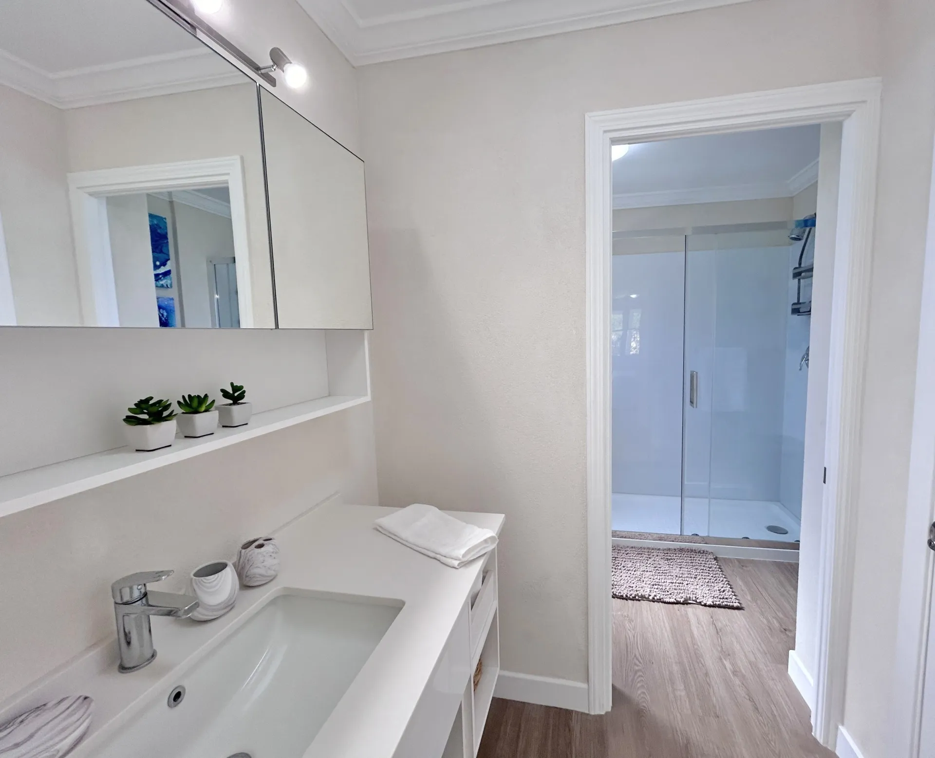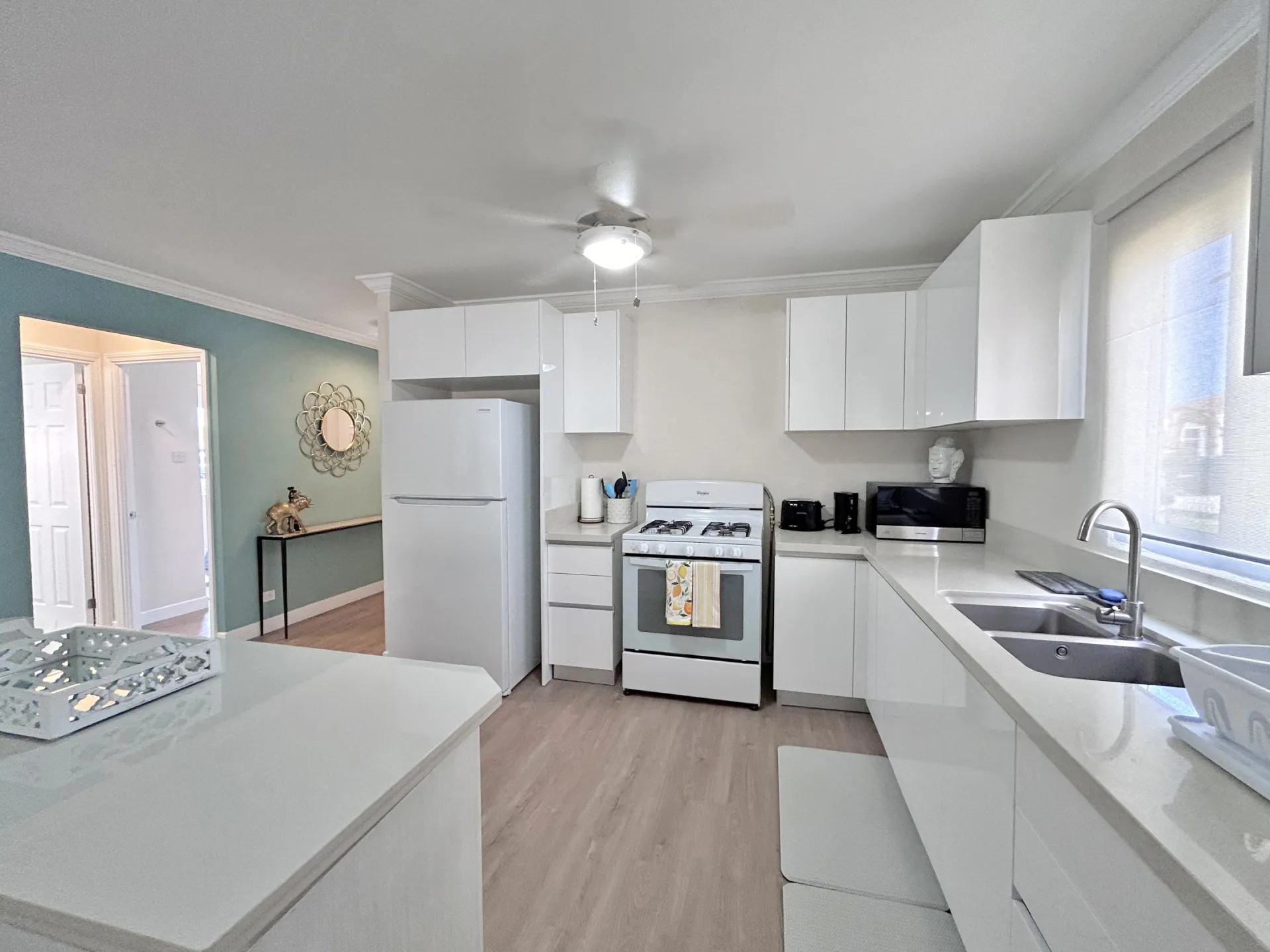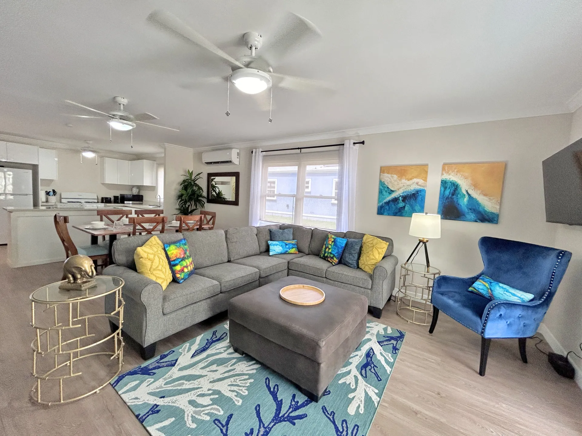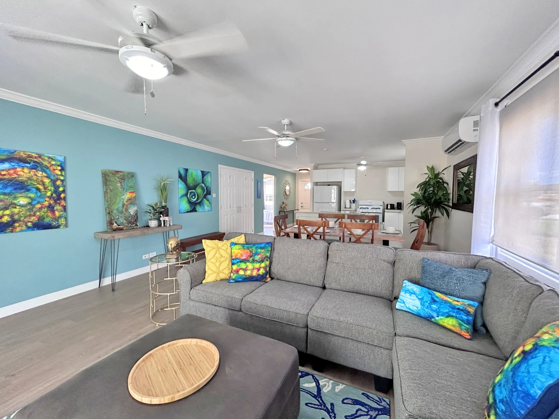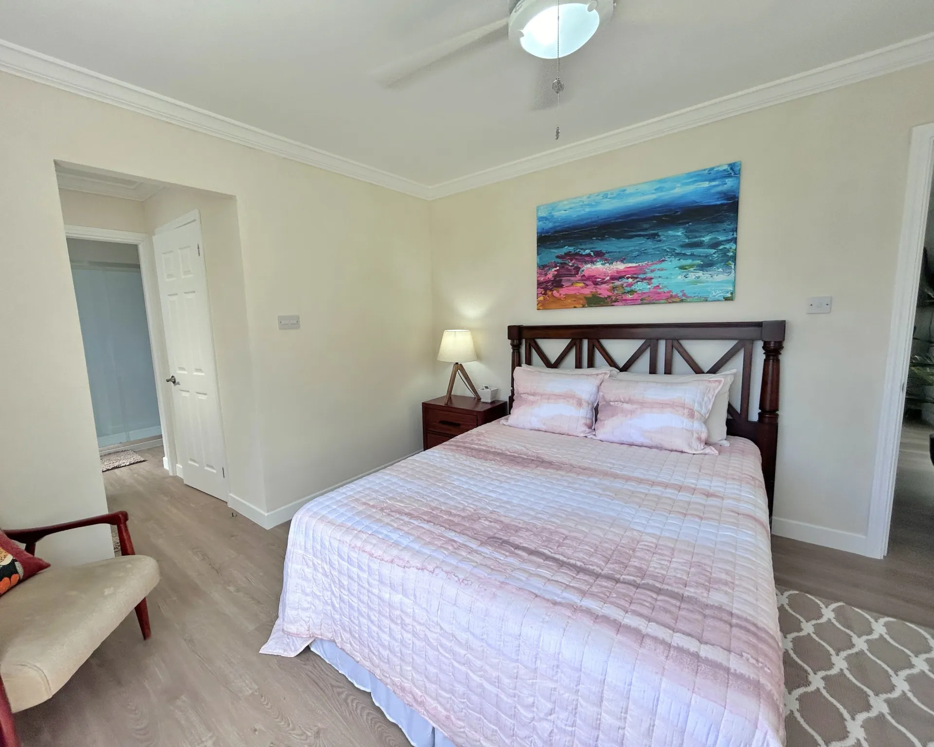 This beautifully fully furnished and fully air conditioned home is ideally located towards to the North of the Sugar Apple neighbourhood and offers lovely privacy. It has an open plan living concept with the laundry neatly tucked away and a spacious covered back patio with an enclosed garden space. The primary bedroom has an ensuite bathroom and spacious walk-in closet. The other two bedrooms share the guest bathroom and have built-in cupboards. All bedrooms have ceiling fans and air conditioning and are equip with desks for workspace.