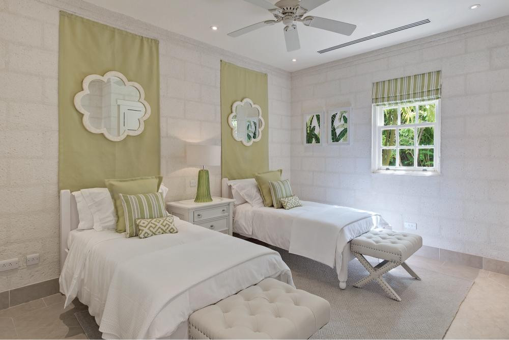 - Bedroom 5: Twin beds, air-conditioning, ceiling fan, Bluetooth speaker, safe. En-suite with bath & combined shower, bidet, single vanity, hairdryer & WC