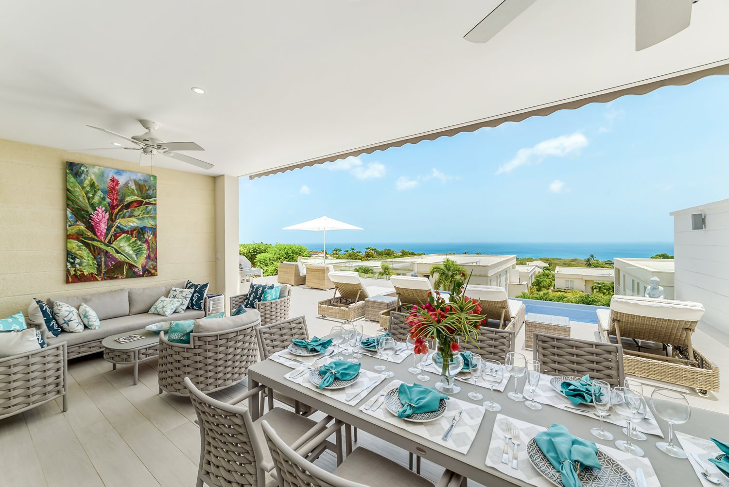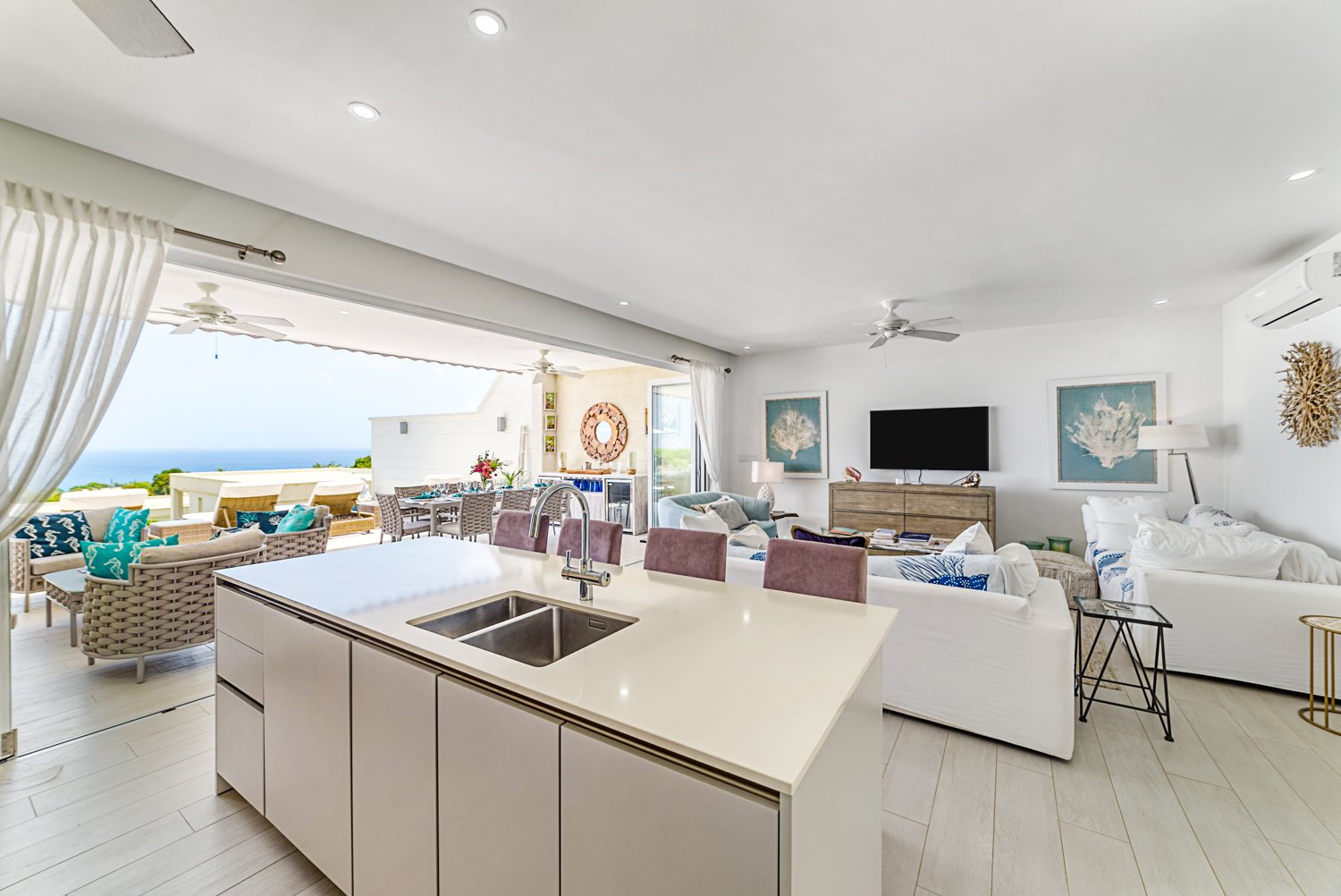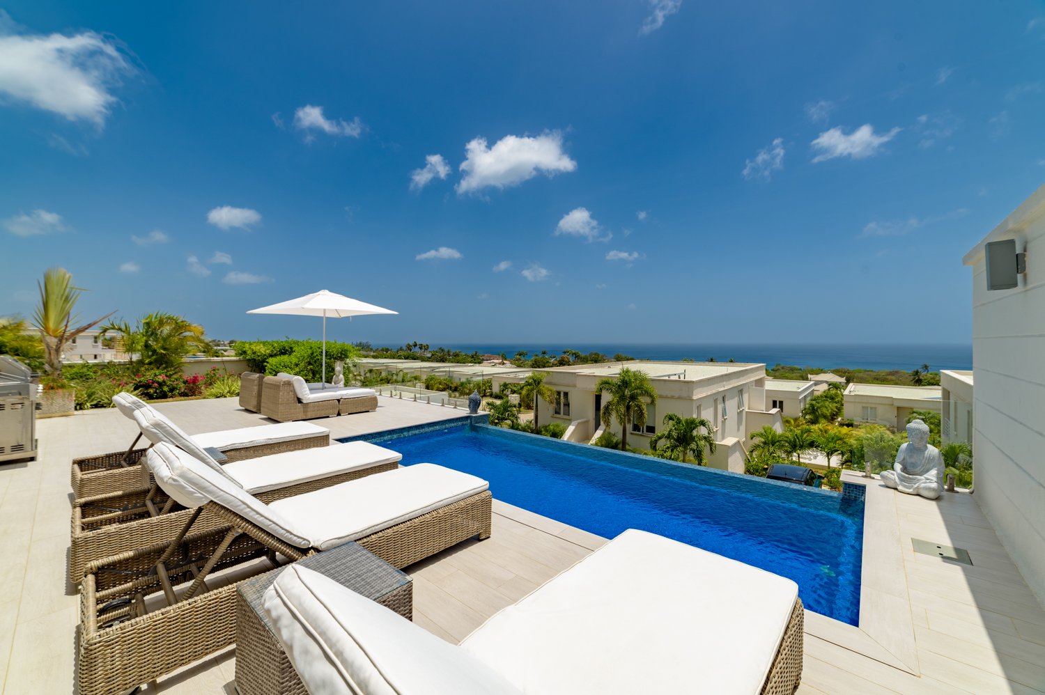 As the name suggests, Ocean View offers breathtaking vistas that will captivate you from the moment you step inside. This beautifully decorated villa features a seamless open-plan layout on one level, highlighting a delightful large lounging terrace and an inviting pool area that showcases the stunning views.